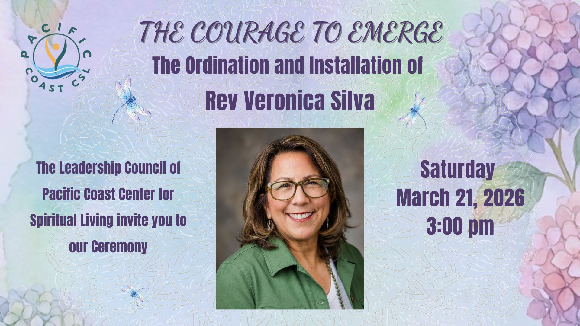 Welcome — I’m so glad you’ve found us! As Senior Minister of Pacific Coast Center for Spiritual Living, I am honored to invite you into our spiritual community. We honor the