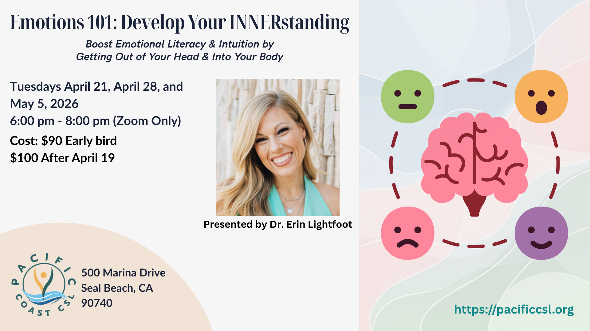 On behalf of our community, we invite you to attend one of our weekly services held every Sunday at 11:00am at Pacific Coast Center for Spiritual Living, in Seal Beach.